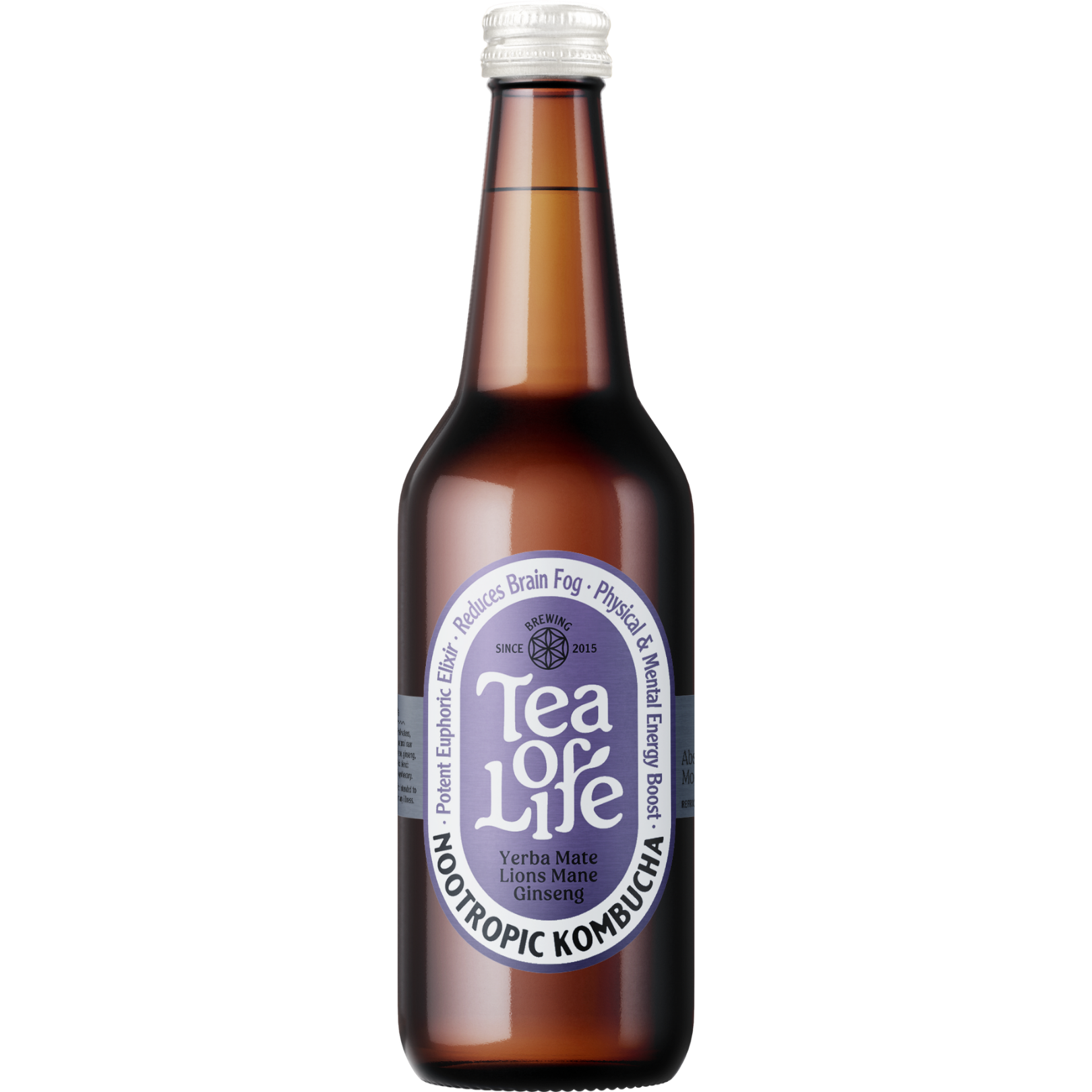 A bold, invigorating kombucha for mindful alertness, brewed with Yerba Mate, Lion’s Mane, Ginseng, and forest berries. Nootropics, natural cognitive enhancers historically used to support focus and clarity, give this brew a thoughtfully stimulating edge, perfect for moments when you want to feel sharp and engaged.
